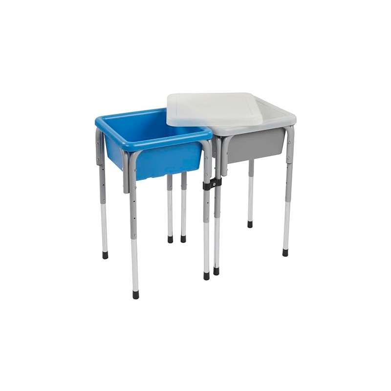 - Product Dimensions: Table 30.32" D × 15.16" W and can adjust to three heights: 20”, 22.5” or 26" H; bins hold approximately three U.S. gallons; Adult Active Engaged & Direct Supervision Required