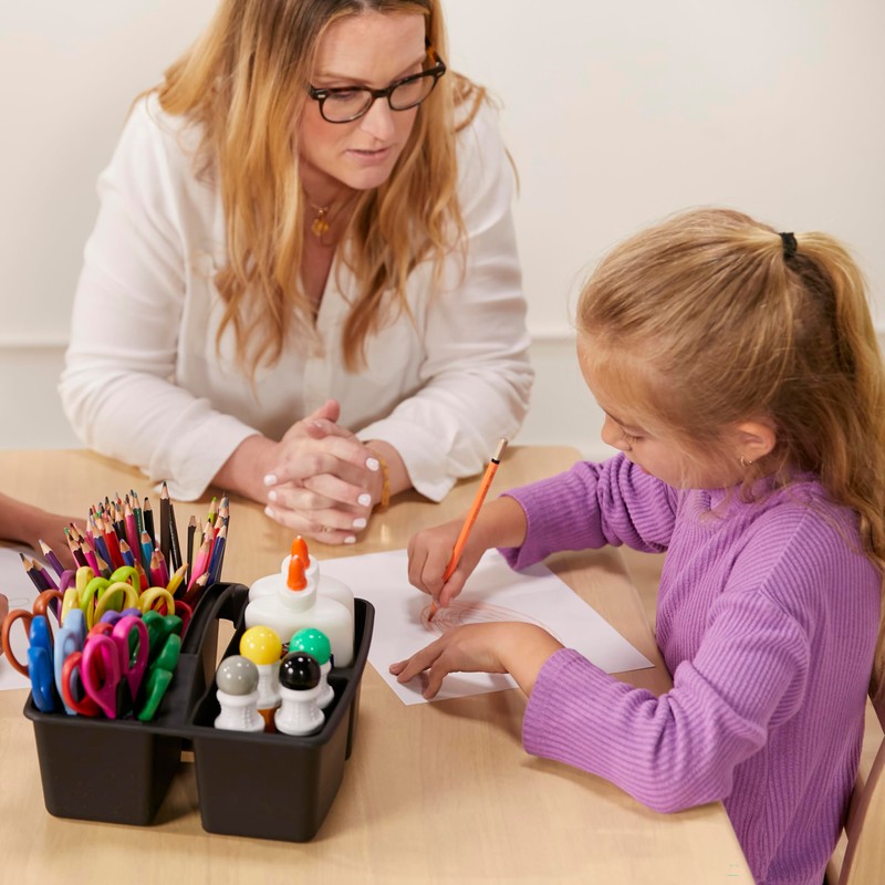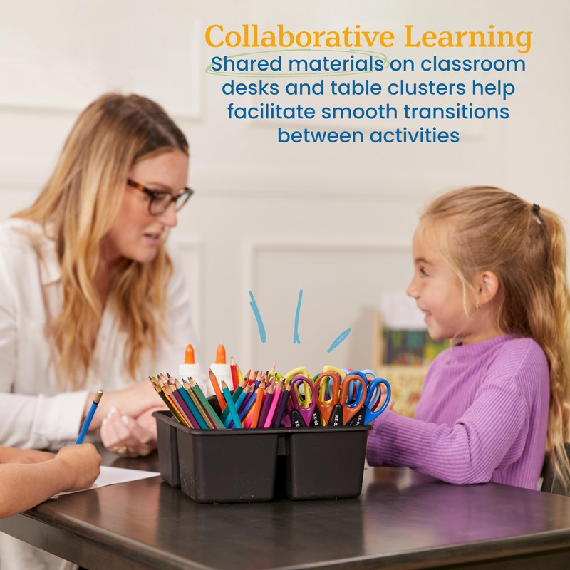 • Storage Caddy Set: Keep school supplies, seasonal items, and art materials within reach in the four compartments of the supplies holder; move lessons indoors or outdoors using the built-in handles