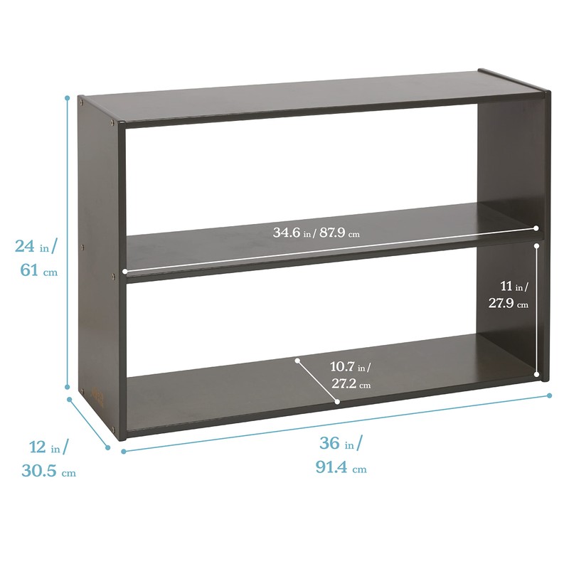 ECR4Kids Streamline 2-Shelf Storage Cabinet, 24in High, Double-Sided Display, Grey Wash