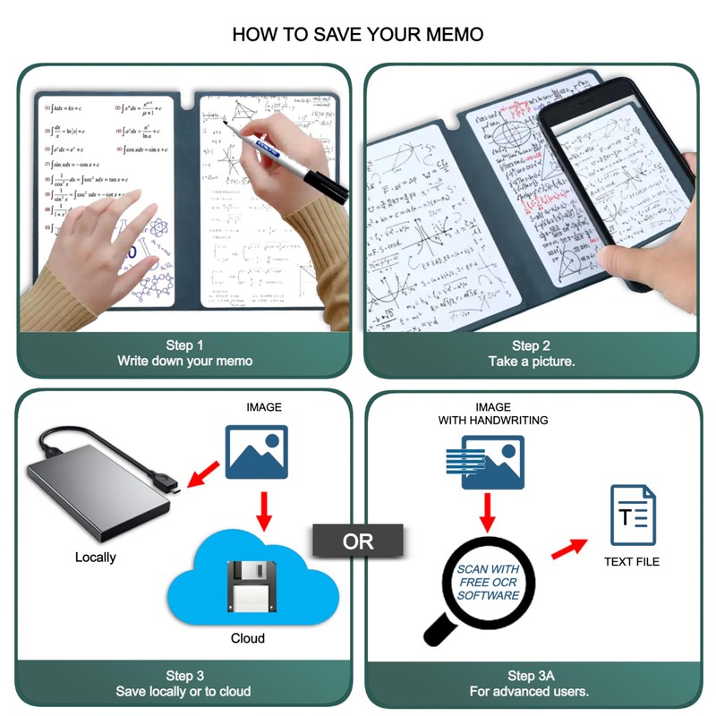 - § Save what matters only: take this convenient portable whiteboard everywhere. Take a picture for your valuable notes. Save the picture or scan your writings with OCR software to convert it into text.