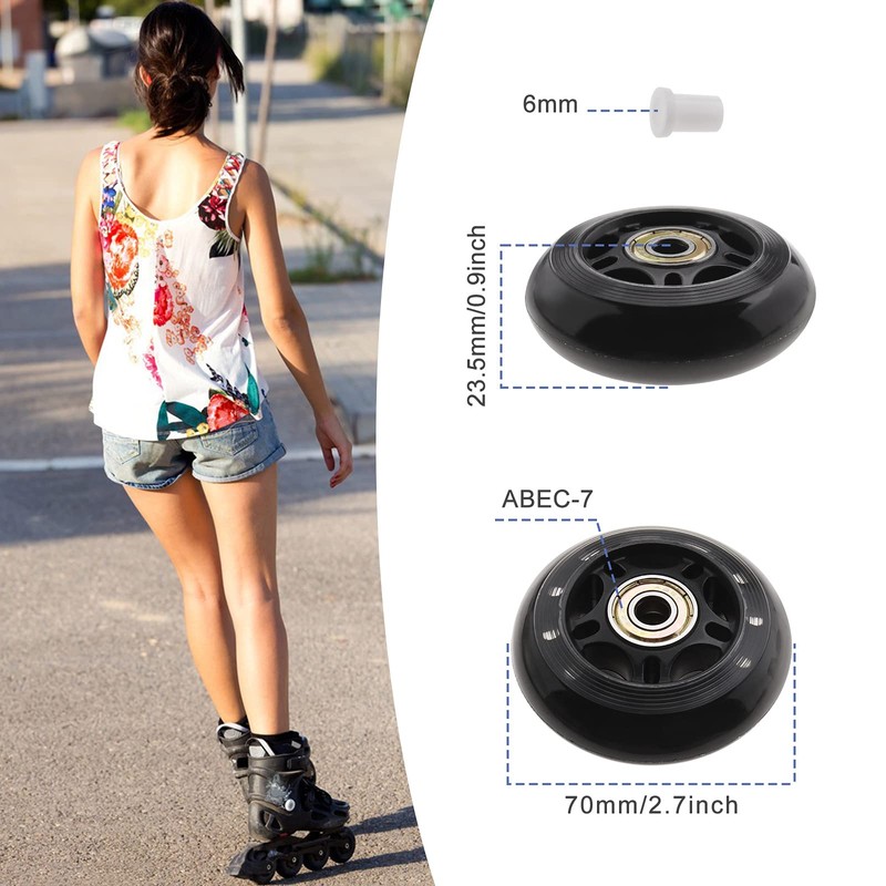 -[Package]: Includes 8 pieces black skating wheels with ABEC-7 bearings and 16 pieces white plastic spacers, precisely matched to the needs of a pair of roller skates, meets your needs extremely.