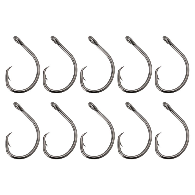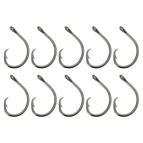 ECSiNG Pack of 10 Fishing Hooks 10/0 Circle Hooks Saltwater Fishing Hooks Big Game Hooks for Tuna Halibut Bass Cod Black Nickel Coating