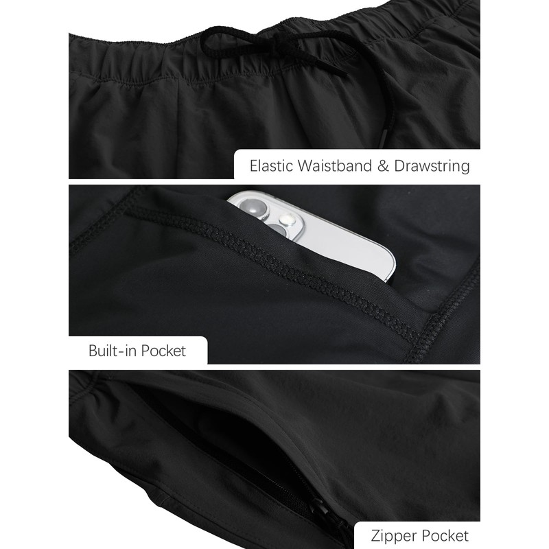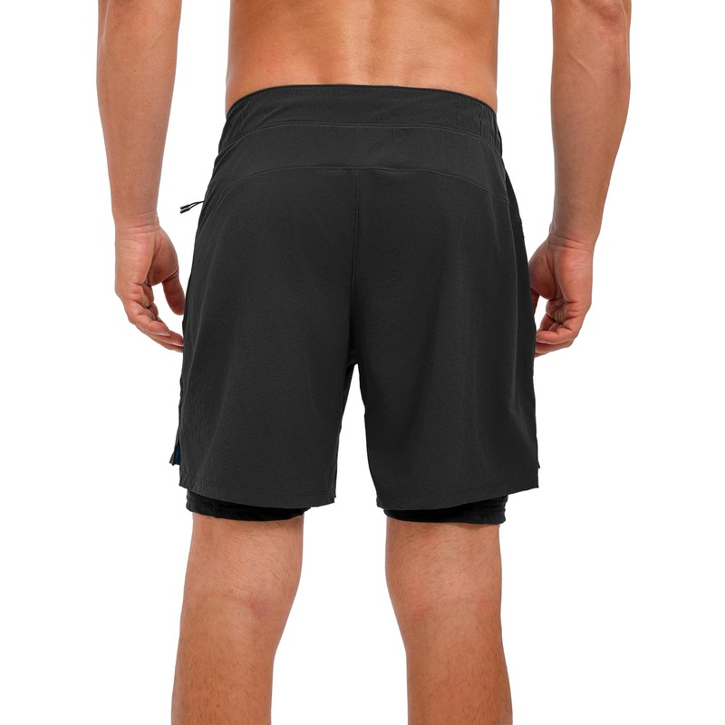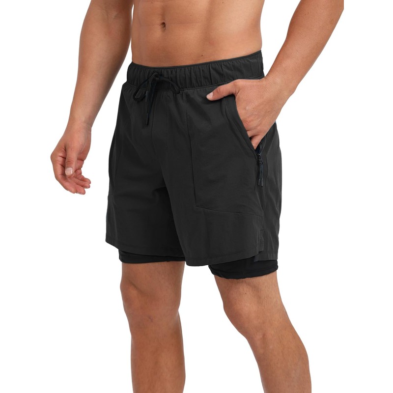 ECUPPER Mens Swim Trunks with Compression Liner 2 in 1 Board Shorts with Zipper Pockets Quick Dry Swimwear Beach Bathing Swimsuit Black L