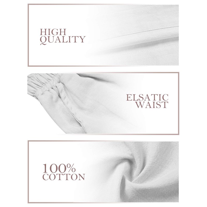 ECUPPER Womens Casual Loose Elastic Waist Cotton Trouser Cropped Wide Leg Pants White 12-14