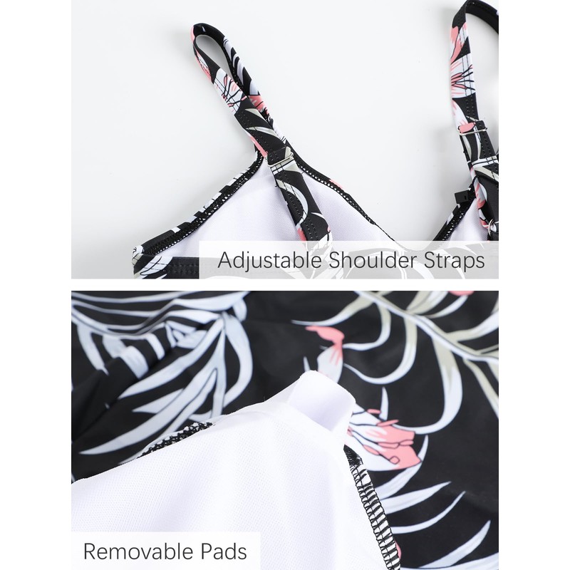 Ecupper Womens Tankini Swimwear Sets Two Piece Swimsuits Flowy Swimdress Top with Boyshorts Bathing Suit Black Leaf L