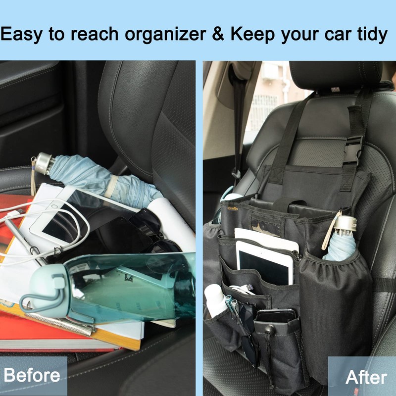 3.Utility and plenty of pockets construction design keep items you need well organized and easy to reach. Use it as a cup holder for car, tablet holder for car as you preferred.