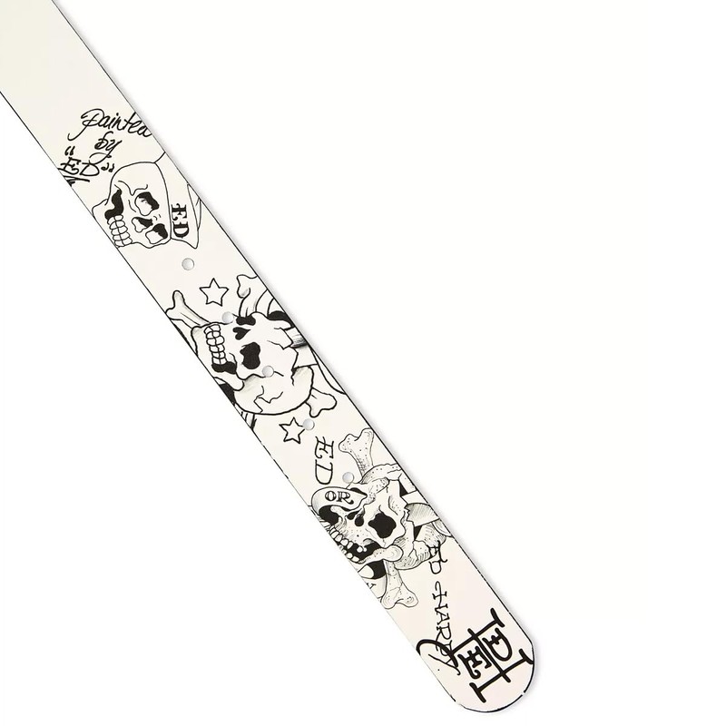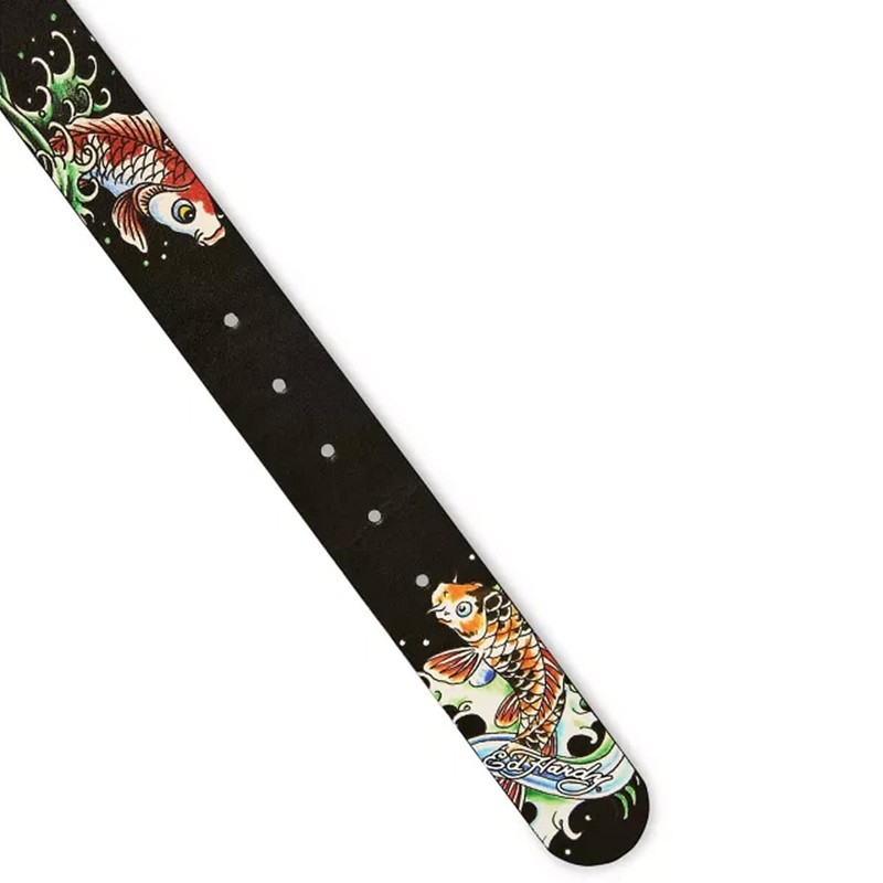 ED HARDY Men's 38mm Koi & Skull Print Graphic Twist Reversible Belt (Black/Wh...
