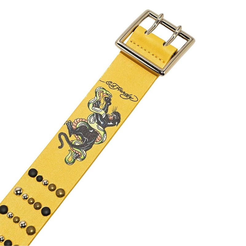 ED HARDY Men's 38mm Panther & Snake Print Studded Dual Prong Buckle Belt (Yellow, 34)