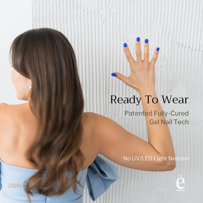edamani Stick-On Real Gel Nail – Patented Innovation, 100% Real Gel, No UV Needed, Salon-Quality, 14+ Days Wear, Chip-Free, Damage-Free, Vegan & Toxin-Free. Instant Manicure in Zibri Blue