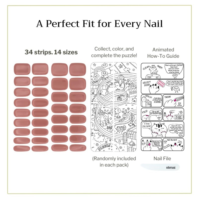 - 🔹 34-SIZE FOR A PERFECT FIT – LIGHTWEIGHT & NATURAL FEEL: Unlike bulky press-ons, edamani gel strips are lightweight, flexible, and ultra-comfortable crafted with iconic, vivid pigments that flatter every skin tone. With 34 nail sizes, they’re designed for perfect fit for every nail shape, delivering a seamless, natural finish that feels just like real nails. No oversights, just perfection!