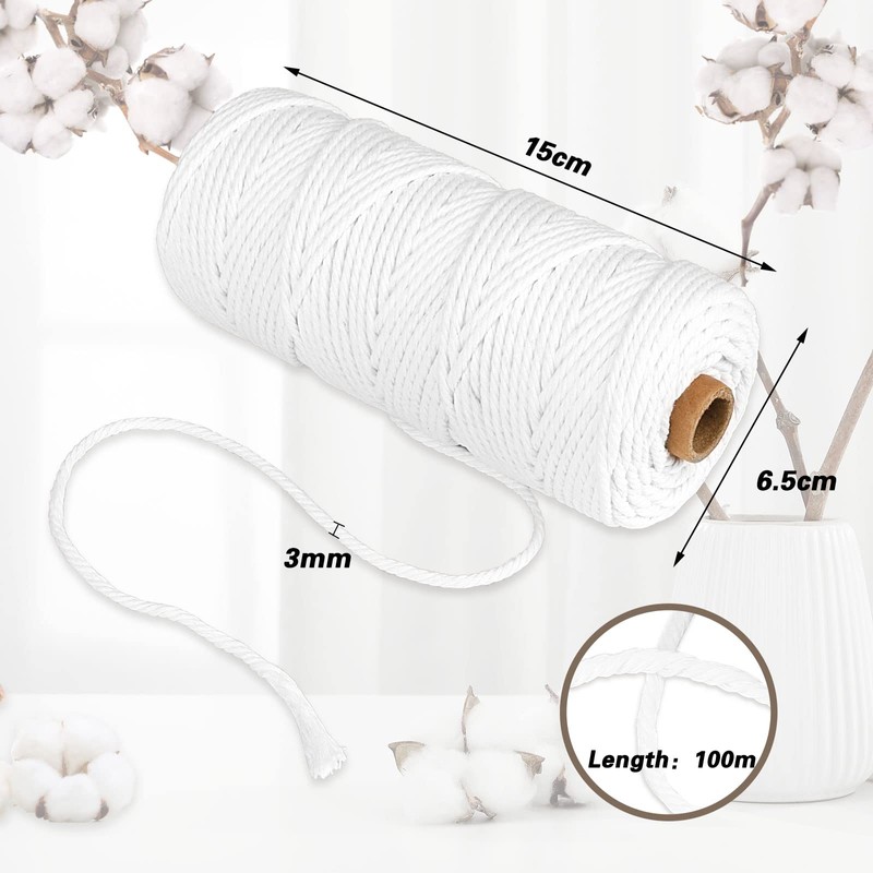 - Size: the diameter of our natural cotton rope is 3 mm, the length is 100 m/328 ft.