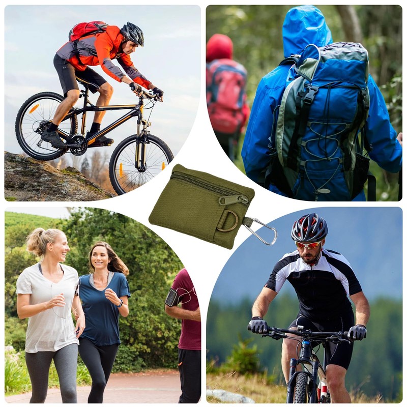EDC Molle Pouch - Outdoor Mini Portable Key Card Case - Compact Wallet with Carabiner, Green