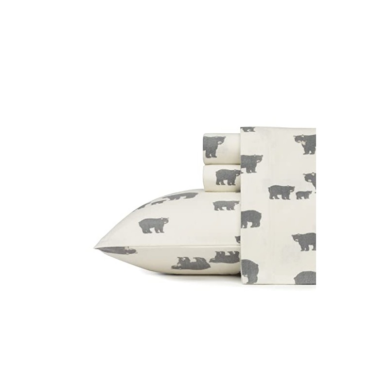 - STYLE & TOUCH: Brushed three times for extra softness and coziness; Perfect for warm sleepers. This Eddie Bauer Bear Family flannel sheet set features bear silhouettes in medium and light grays on a white background
