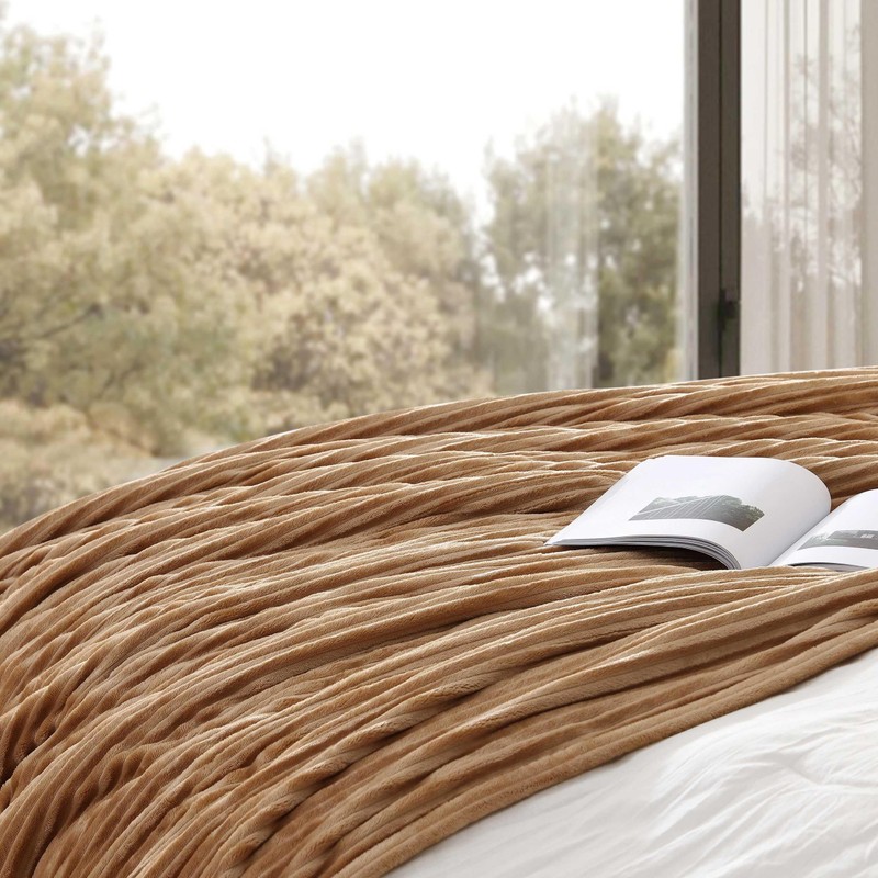 - QUALITY: Made from premium ribbed plush polyester on one side and a dense high‑pile solid Sherpa reverse, our blanket delivers an irresistibly smooth, velvet‑plush touch paired with fluffy warmth. It’s breathable yet insulating, lightweight yet deeply comforting—designed to withstand everyday use without losing its softness or sleek appearance.