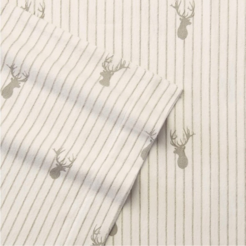 Eddie Bauer - King Sheet Set, Warm Breathable Cotton Flannel Bedding with Deep Pockets, Brushed for Extra Softness, Cozy Home Decor, Oeko-Tex Certified (Deer Lodge Beige, King)