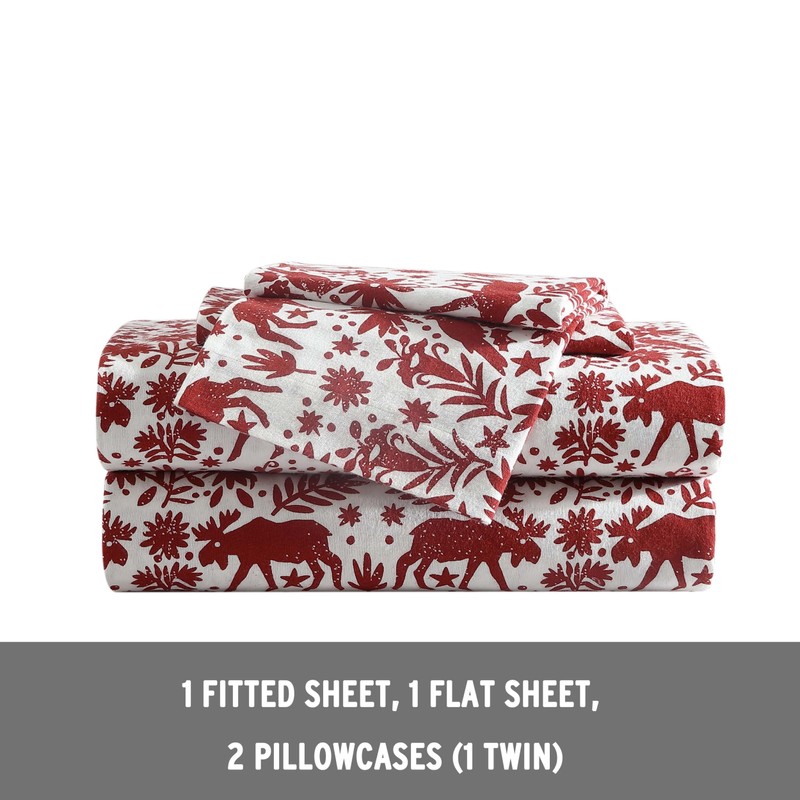 Eddie Bauer - Twin Sheets, Cotton Flannel Bedding Set, Brushed for Extra Softness, Cozy Home Decor (Arcadia Red, Twin)