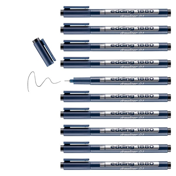 edding 1880 profipen - black - 10 pens - line width 0.25 mm - fineliner pen for precise writing, sketching and technical drawing - fine, metal-encased nib - suitable for use with rulers and stencils