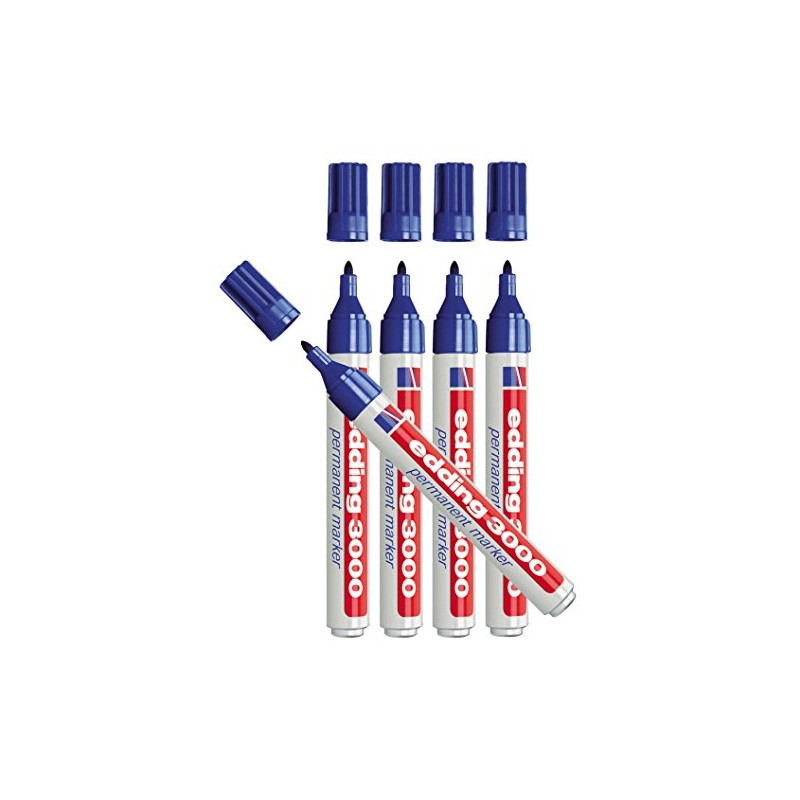 Edding 3000 Permanent Markers Bullet Tip Approx. 1.5 - 3 mm (Pack of 5, Blue)
