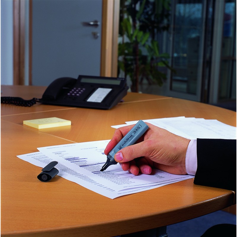 - Highlighters for luminous markings and highlighting text and notes on almost all paper surfaces; for school, study and office