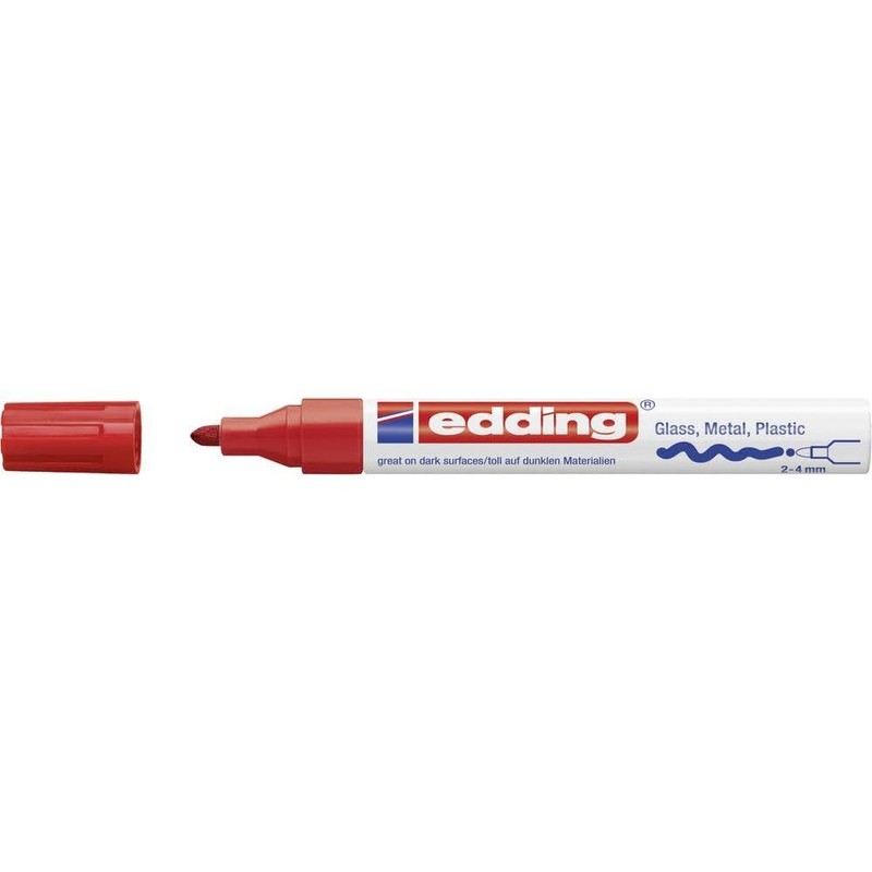 edding 750 gloss paint marker - red - 1 paint marker - round nib 2-4 mm - paint pen for glass, pebbles, wood, plastic, paper - waterproof, high coverage