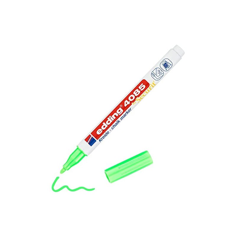 edding edding 4085 Kreidemarker - neon-grün - 1 Kreidestift - Rundspitze 1-2 mm - dünner Kreidestift für Tafel abwischbar - zum Beschriften von Fenster, Glas, Spiegel - Tafelstift mit deckenden Farben