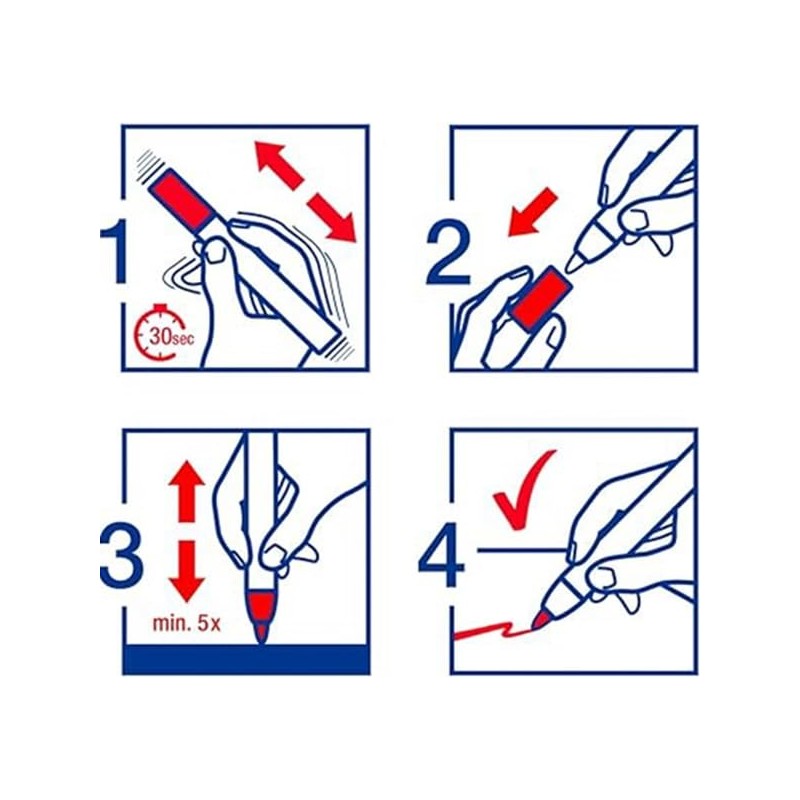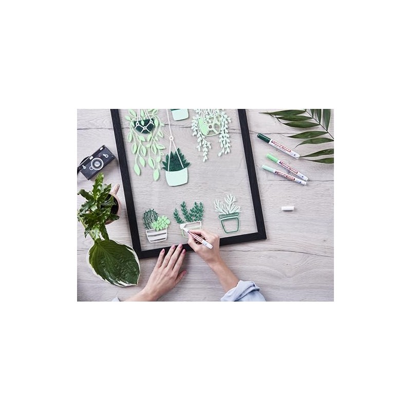 Die Flüssigkreide im Markerformat ermöglicht eine einfachere Handhabung als herkömmliche Kreide. Professionelle und elegante Schriftbilder sind mit dem edding Kreidemarker sehr leicht zu gestalten. Die Hände bleiben sauber. Es stehen 20 brillante Farben zur Auswahl. Neon-orange und neon-pink leuchten unter UV-Licht. Mit der dünnen Schriftbreite können Akzente gesetzt und kleine Flächen beschriftet werden. Der edding Kreidemarker ist ein beliebtes Werkzeug in Restaurants, Einzelhandel oder Automobilverkauf. Überall da wo gut eine präzise Gestaltung benötigt wird. Zu Hause können auch zu jeder Jahreszeit und für jeden Anlass bspw. Fenster verziert werden. Die Fläche kann entweder frei oder mit Hilfe einer Vorlage gestaltet werden. Dafür die Vorlage hinter das Fenster kleben und anschließend die Motive in der gewünschte Farbe nachzeichnen. Auf der edding Website können dafür eine Vielzahl an Schablonen heruntergeladen werden. Vor der ersten Nutzung bitte den Marker wie folgt aktivieren: Marker mit geschlossener Kappe schütteln, anschließend die Kappe abnehmen. Marker mit der Spitze nach unten, beispielsweise auf einem Stück Testpapier, anpumpen. Vorsichtig auf- und abpumpen, bis die Farbe die Spitze füllt. Der Marker ist jetzt anwendungsbereit. Die Spitze sollte nicht überpumpt werden, um Nasen im Schriftbild zu vermeiden. Sollte doch eine Korrektur notwendig sein, einfach mit einem feuchten Tuch die Tinte abwischen. Bei empfindlichen Materialien (z. B. plexiglas®) empfehlen wir, vorher einen Test an einer unauffälligen Stelle durchzuführen. Waagerecht lagern. Hochwertiges Markenprodukt.