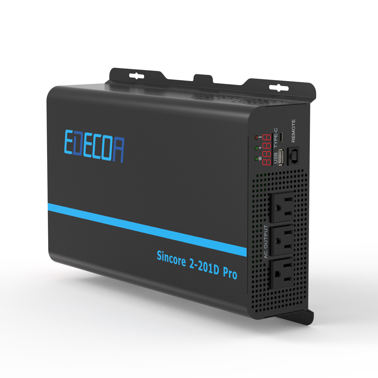EDECOA Intelligent Inverter can supply 2000W continuous power/4000W max peak power.Connecting the inverter to battery,it can convert 12V DC to 110v 120V 60HZ AC.
