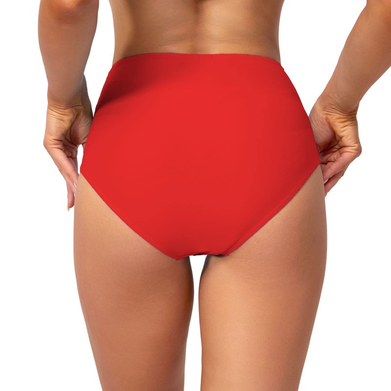 Edelqual Womens High Waisted Bikini Bottom Tummy Control Full Coverage Ruched Bathing Suit Swimsuits Tankini Cheeky 2025 Cute Swim Shorts (Red,L)