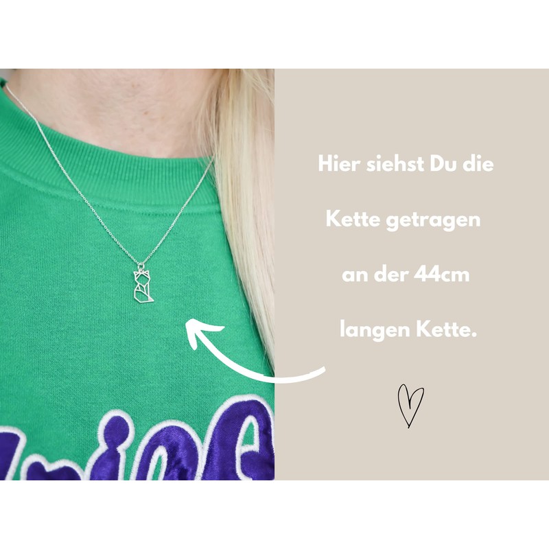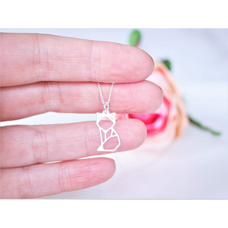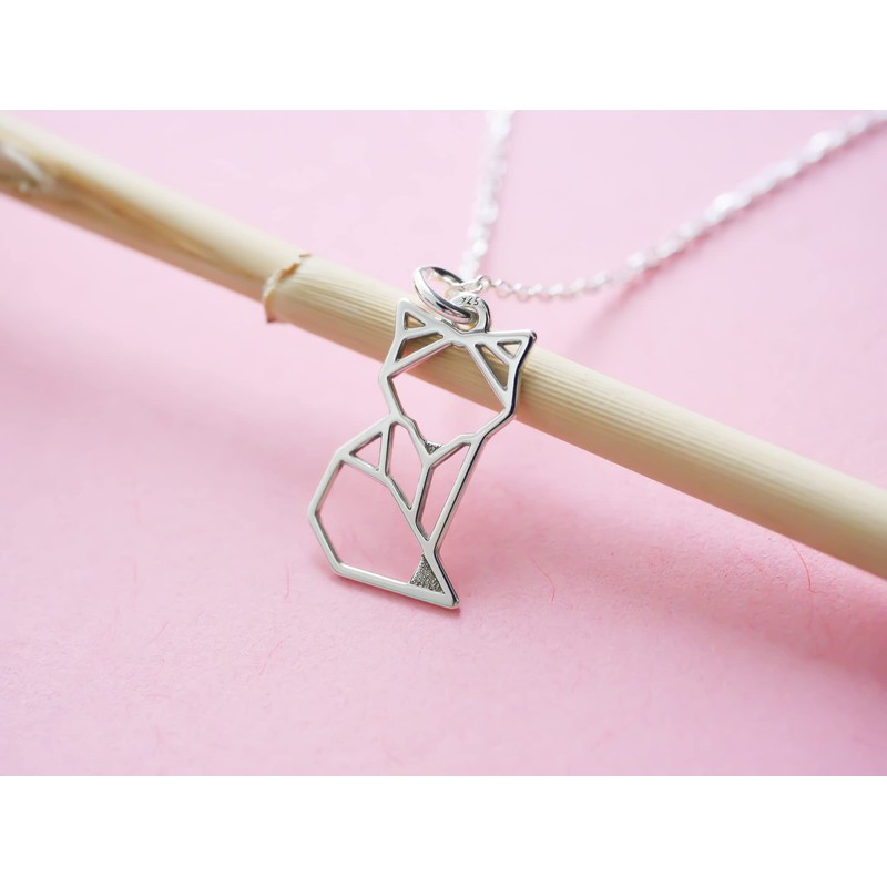 Delicate necklace made of 925 silver with a sitting origami fox.