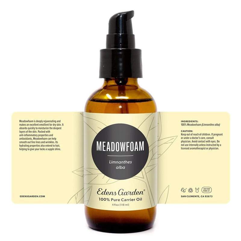 - Meadowfoam is rich in rejuvenating properties, working to remedy dry skin, soothe blotchiness and smooth-out wrinkles. This carrier oil is non-greasy and stable, absorbing quickly and moisturizing the deepest layers of your skin. Its hydrating properties also extend to hair, giving your locks a luscious shine.