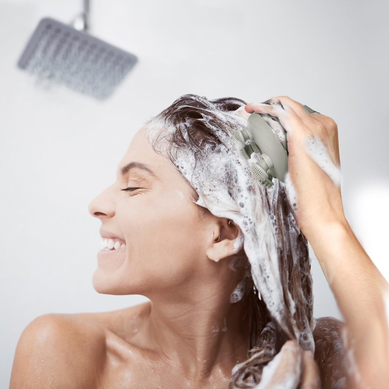 - IPX7 Waterproof for Wet & Dry Use: Designed with 2 covers for the charging port, our scalp massager gives your scalp a comfortable SPA while washing your hair, easily cleaning and removing the dandruff and grease.