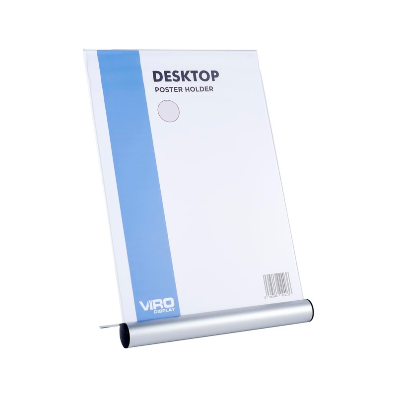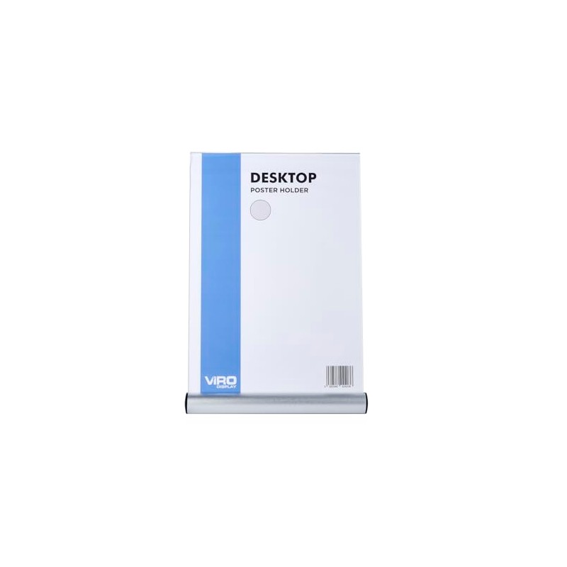 Edge Desktop Display – A5 Portrait (148.5 x 210mm) by Viro – Sleek Aluminum Base wicth Clear Acrylic Holder, Ideal for Menus, Promotional Displays, & Point of Sale (POS) Materials, Easy Poster Swap