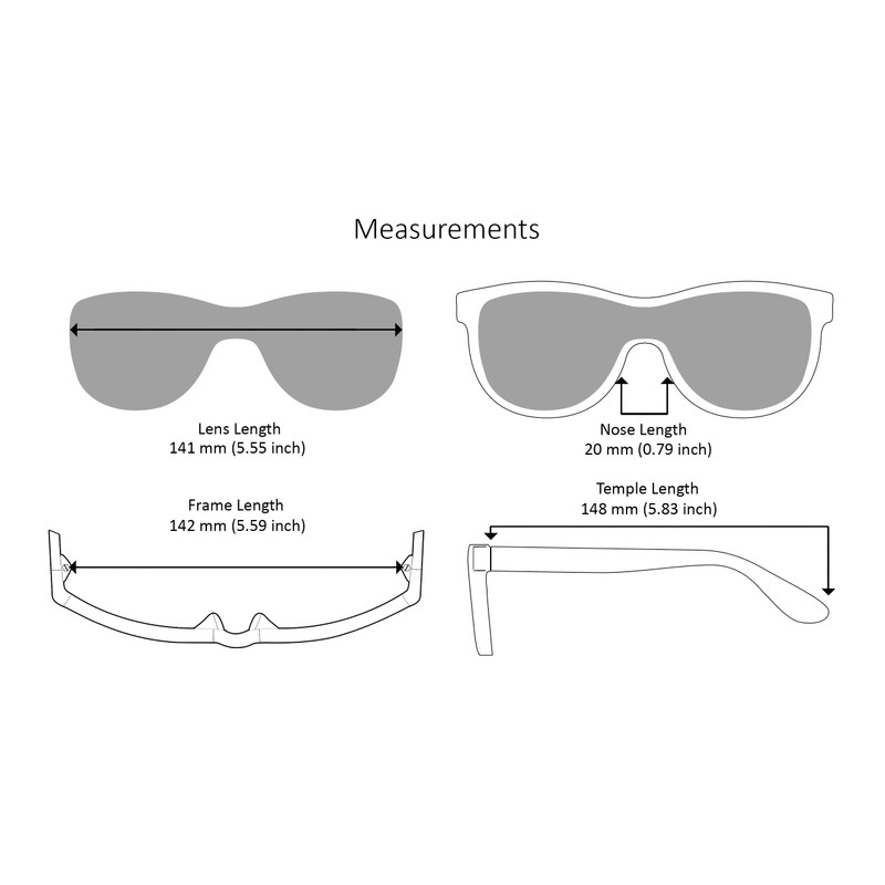- PRODUCT DIMENSION: Lens Width: 141 mm (5.55 inches) | Nose Bridge: 20 mm (0.79 inches) | Temple Length: 148 mm (5.83 inches) | Frame Length: 142 mm (5.59 inches).