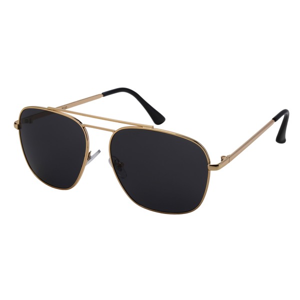 Edge I-Wear Square Aviator Sunglasses Men Metal Square Sunglasses Double Brow Bar 5133-KGM (Gold Frame/Grey Lens, 57)