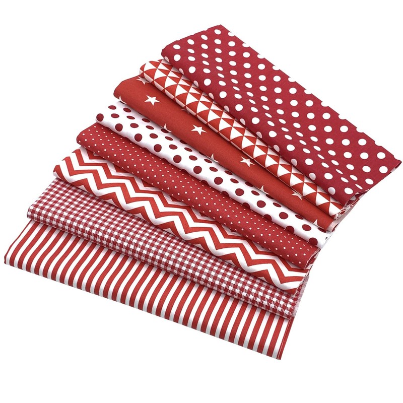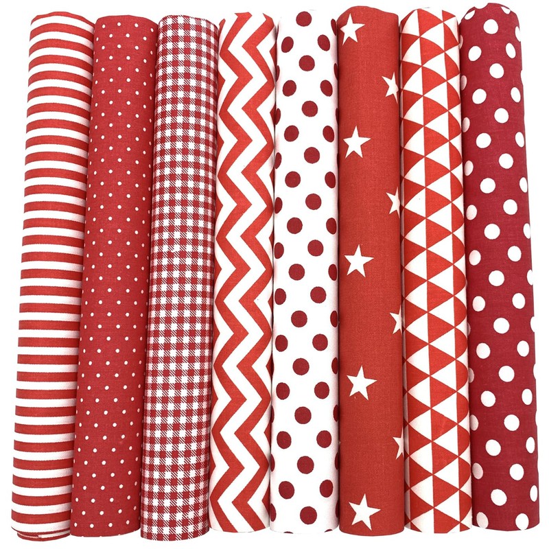 EDGEAM Pack of 8 Fabrics for Sewing 50 x 50 cm Cotton Fabric Patchwork Fabrics Package Quilting Fabrics for Quilting DIY Crafts Scrapbooking (Red)