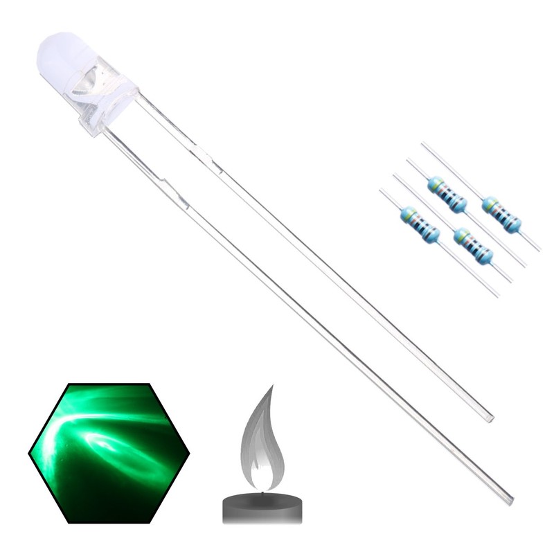 EDGELEC 100pcs 3mm Green Flicker Flickering LED Diodes Candle Flicking Lights Clear Round Lens 29mm Long Lead DC 3V Light Emitting Diode Lamp Bulb +100pcs Resistors (430ohm for DC 6-12V) Included