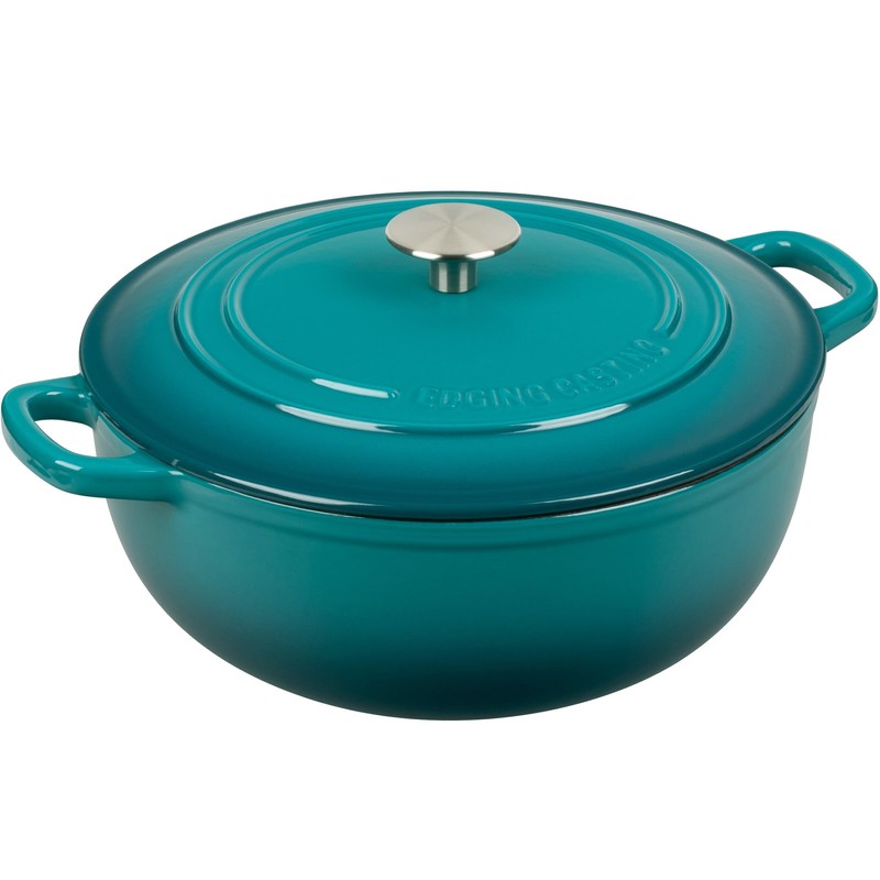 EDGING CASTING Enameled Cast Iron Dutch Oven Pot with Lid, 5 Quart, Round Dutch Ovens, Bread Oven Dual Handles, for Sourdough Bread Baking, Oven Safe up to 500°F, Darkcyan