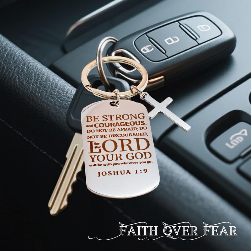 - Empower with Joshua 1:9 Scripture: Laser-etched with Bible verse: "Be strong and courageous! The Lord your God is with you wherever you go." Christian keychain for men – ideal confirmation gifts or sobriety milestones.