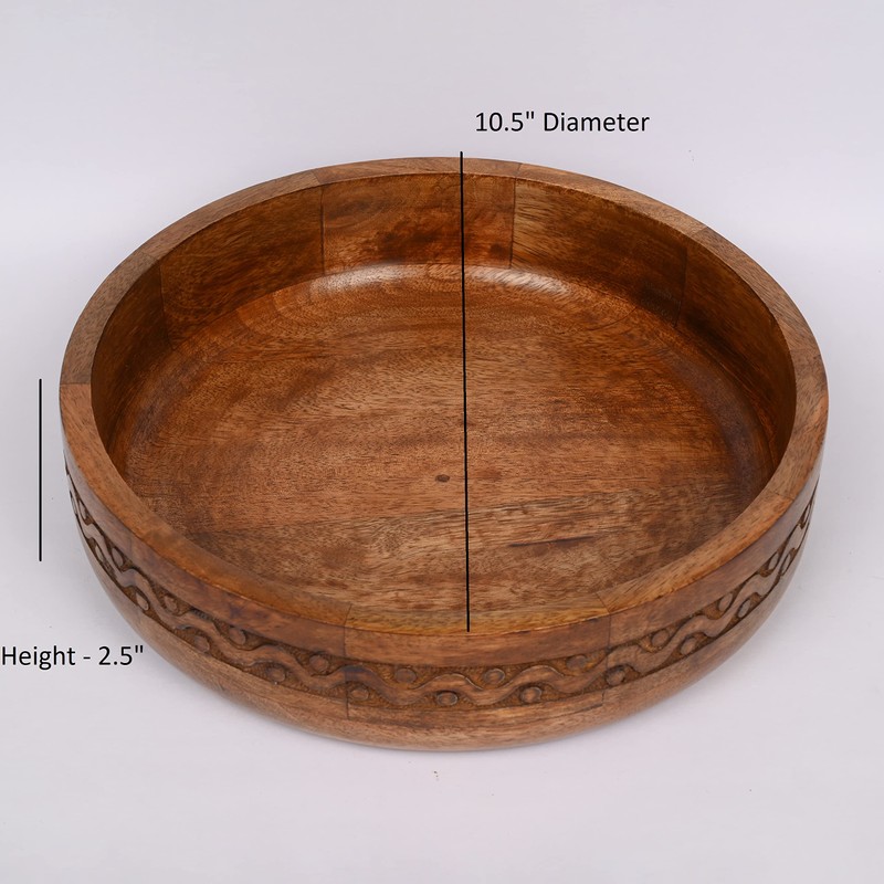 EDHAS Mango Wood Decorative Round Carved Bowl for Decoration, Centerpiece Bowl for Table (10" x 10" x 2.5")