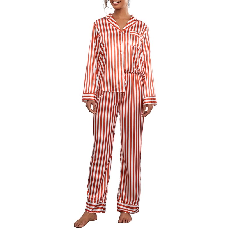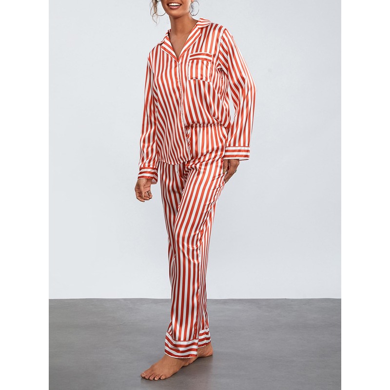 - Features: The shirt has long sleeve, turn-down collar, button closure, a pocket on the front, pair with a pair of matching pants, a simple and fashionable striped pajama set