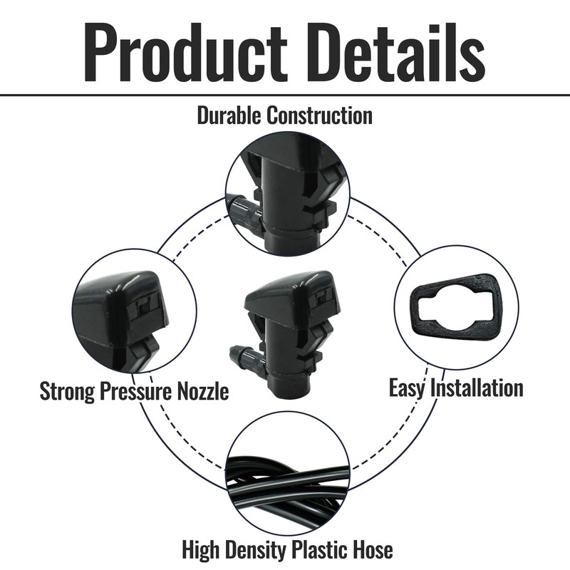 - PROFESSIONAL-GRADE REPLACEMENT: All components meet or exceed OEM specifications for durability and performance. The nozzles feature anti-clog designs, while the hose maintains proper fluid pressure even in extreme temperatures. Perfect for addressing multiple washer system issues in one complete repair.