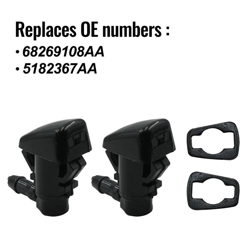 - COMPREHENSIVE WASHER SYSTEM SOLUTION: This complete kit includes 2 nozzles, 2 gaskets, 1 high-quality washer fluid hose (12"), and 4 connection adapters (2 straight/2 angled). Replaces OE numbers 68269108AA and 5182367AA, providing everything needed to repair or upgrade the washer system on for Dodge Durango WD 2011-2023 vehicles.