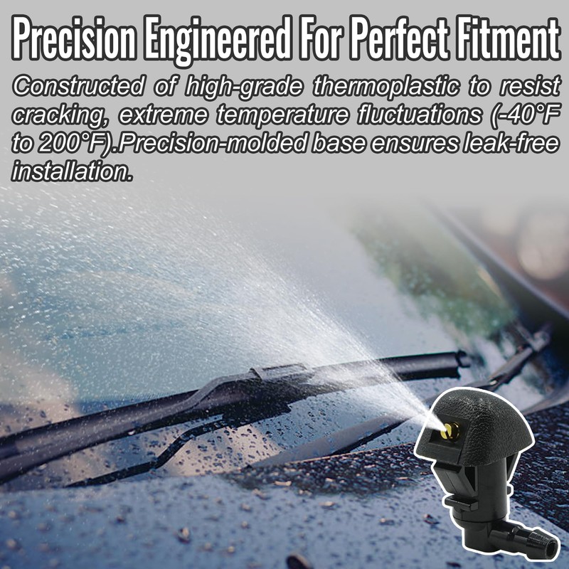 - DURABLE CONSTRUCTION & IMPROVED PERFORMANCE:Constructed of high-grade thermoplastic to resist cracking, extreme temperature fluctuations (-40°F to 200°F). Optimized spray pattern provides 30% wider coverage than worn OEM nozzles, and precision-molded base ensures leak-free installation. It's the ideal replacement when experiencing weak spraying, clogged nozzles, or uneven fluid distribution.
