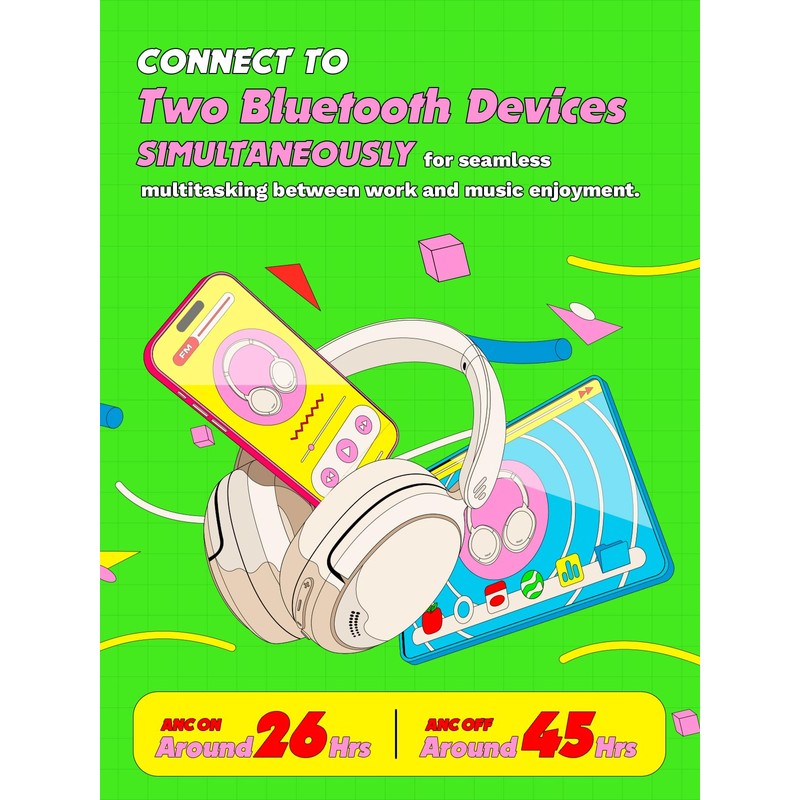 - [-44dB Hybrid Active Noise Cancellation] Advanced hybrid active noise cancellation technology, combined with the upgraded full-fit over-ear design, ensures excellent passive noise reduction and achieves a noise reduction depth of up to -44dB, letting you immerse yourself in a world of music anytime, anywhere.