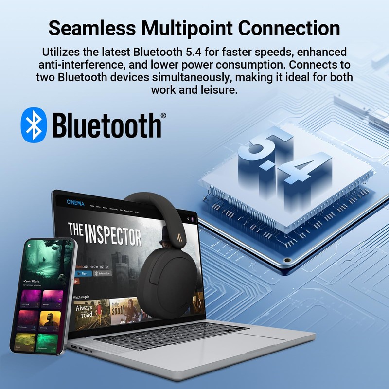 - Bluetooth V5.4 for seamless audio streaming and a stable connection, support dual-device connection, allowing instant switching between music, videos and calls on 2 differrent devices simultaneously.