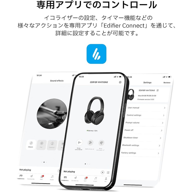 Edifier WH700NB Wireless Noise Cancelling Headphones Bluetooth 5.3 Sound Capture/ENC Call Noise Canceling/Multipoint/Built-in Microphone/68 Hours/Support Dedicated App/Low