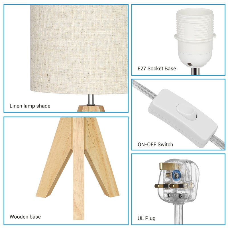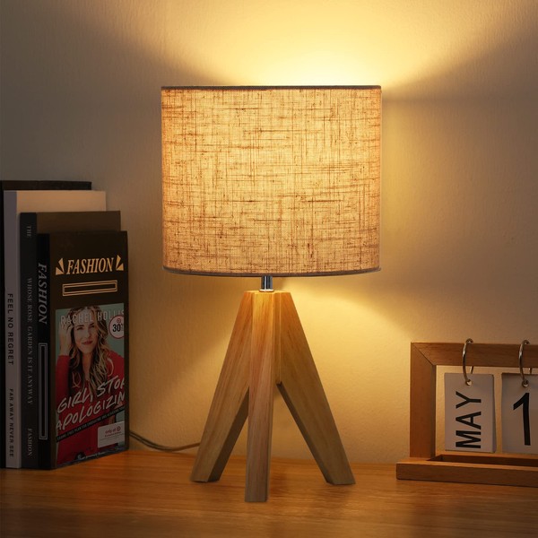 - 【Elegant and Modern Style】Solid wooden tripod base matches linen fabric lampshade,neutral color match with both contemporary and traditional furnishings;This desk lamp is perfect for the any indoor place, bedroom, living room, bedside, learn desk etc.