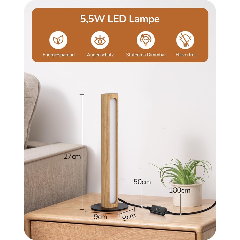 • Elegant & Minimalist: This LED wooden bedside lamp has a modern design with classic wood style and is a subtle eye-catcher; whether placed in the bedroom, living room or next to the bed, it provides pleasant light and perfect decoration.