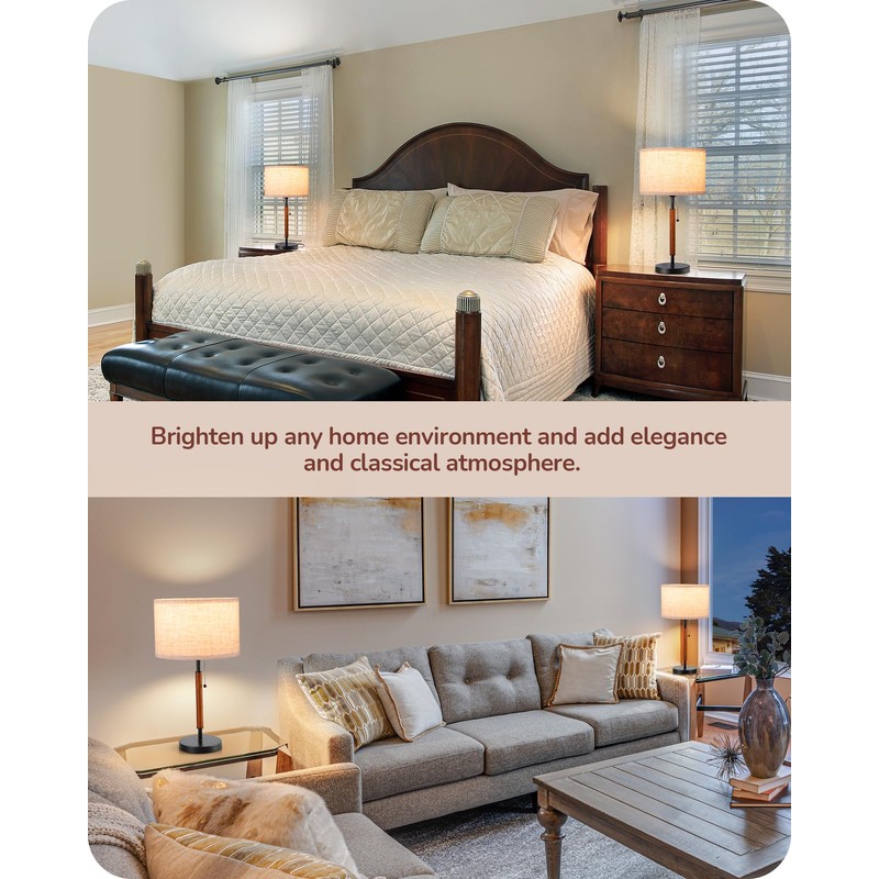 - [Vintage Elegance Reimagined] Add a touch of mid-century modern flair to your home with this side table lamp; the combination of a beige linen lampshade, a black metal base, and a dark wooden pole blends vintage charm with modern simplicity, perfect for your living room or bedroom