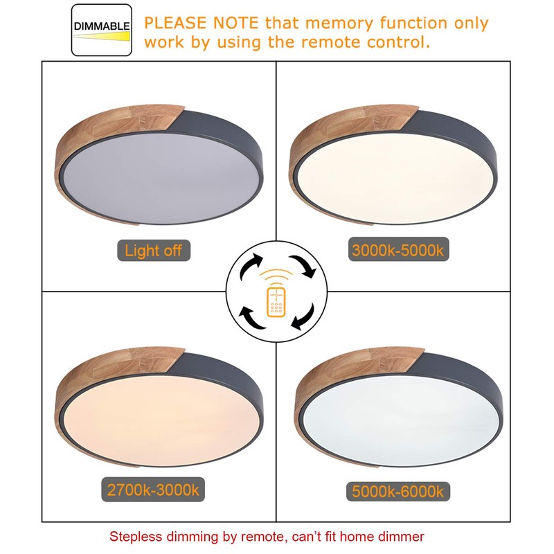 EDISLIVE Ceiling Light Dimmable 19inch Modern Minimalist LED Round Shaped Wood & Metal & Acrylic Flush Mount Ceiling Light with Remote Control Gray